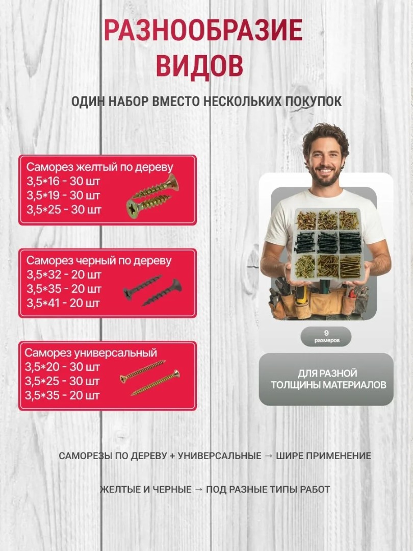 Набор саморезов Универсальный - 300 шт